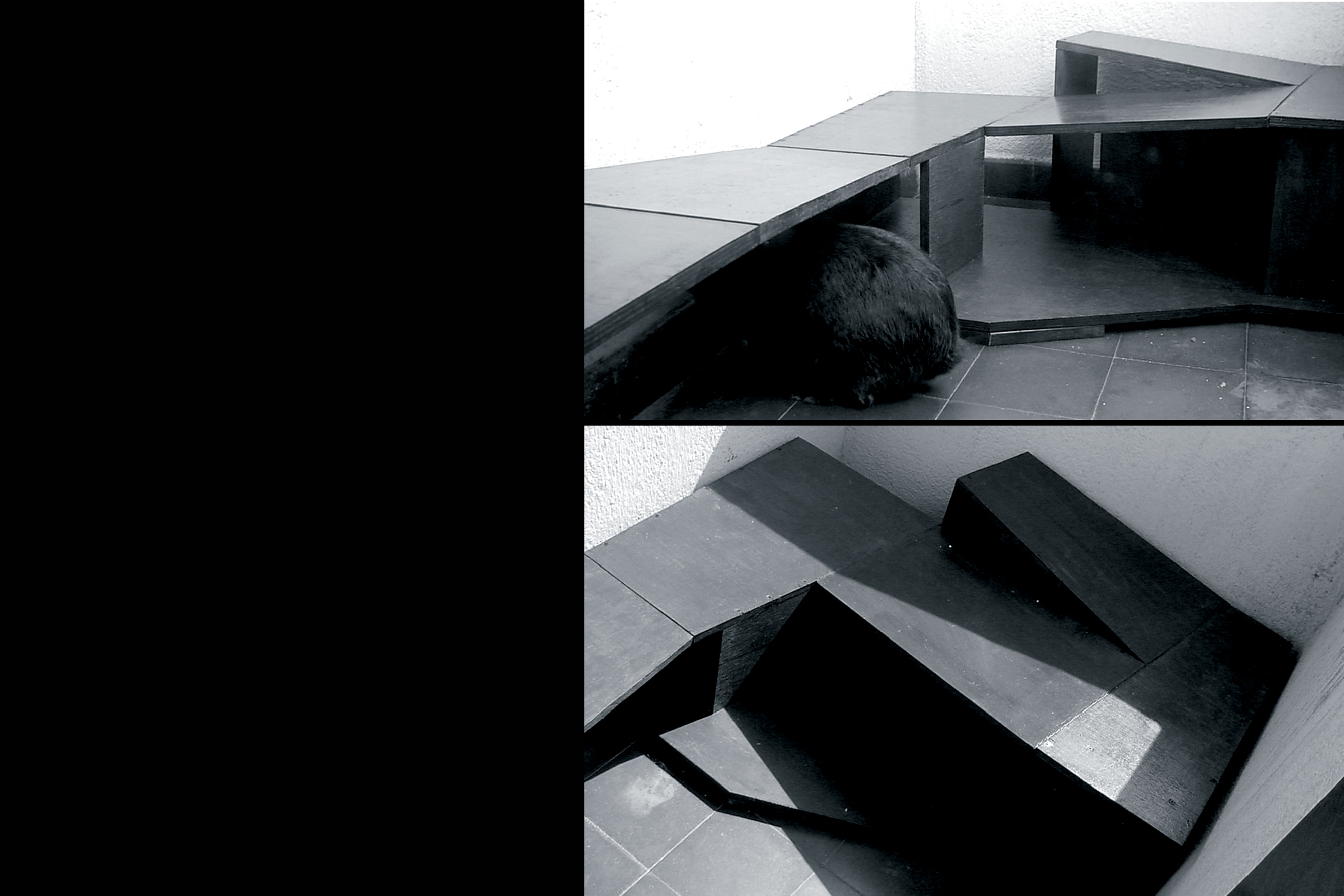 En este particular emprendimiento, el desafío se desarrolla al enfrentar un programa tradicional -vivienda- para un usuario sumamente atípico -una coneja de 2 años-. Se comenzó a indagar en la posibilidad de reconvertir un balcón de dimensiones mínimas, en un espacio para que la mascota desarrolle sus actividades cotidianas, utilizando a la arquitectura como una herramienta que nos permita analizar, entender y resolver las necesidades del animal; evitando caer en viviendas comerciales fabricadas con preconceptos funcionales y formales.